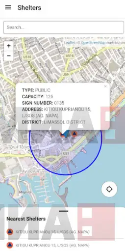Специјална апликација за лоцирање на најблиското засолниште