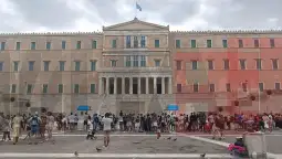 Просторот пред грчкиот Парламентот, односно делот кај споменикот на „Незнајниот војник“ е полн со туристи кои уживаат и се фотографираат со војниците од претседателската гарда.