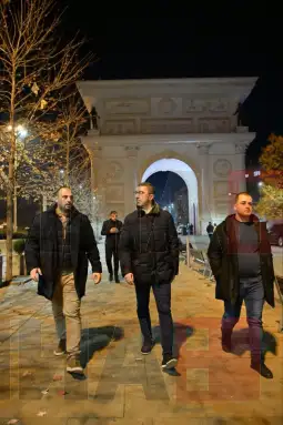 Премиерот Мицкоски со градоначалникот Ѓорѓиевски во вечерна обиколка на Скопје