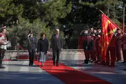Скопје, 27 февруари 2026 (МИА) - Претседателката Гордана Сиљановска-Давкова денеска со државни и воени почести го пречека претседателот на Албанија, Бајрам Бегај, кој е во официјална посета на Македонија.
