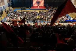 Со развиорени албански знамиња и овации, албанскиот премиер беше пречекан на собирот во Атина се одржа вчера попладне во сала во културен центар што беше целосно исполнета.