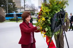 Во рамките на посетата Сиљановска-Давкова положи венци на Споменикот на татковината и на спомен-бистата на Блаже Конески во паркот „Бундек“.