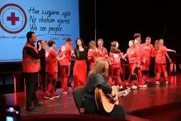 -Тој нè потсетува дека хуманоста нема возраст, нема граници, нема крај. Нашето најголемо богатство се луѓето - и оние на кои им помагаме, и оние кои се доброволци, дарители, вработени и поддржувачи. Кога ќе погледнеме назад, ќе видиме илјадници волонтери со препознатливата маичка и амблем, како со насмевка, но и со умор во очите, ја носат хуманоста таму каде што најмногу недостасува. Ќе ги видиме како даруваат крв, обезбедуваат прва помош и психосоциална подршка, храна и лекови, спроведуваат обуки, подготвуваат пакети за ранливите, овозможуваат нега на стари и лица со посебни потреби и помагаат без да прашаат „зошто“ - Бидејќи тие знаат зошто. Црвениот Крст на Република Северна Македонија не е само организација – тоа е движење. Тоа е совест на општеството, рече претседателот на Црвениот крст, Велев.