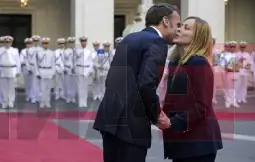 На почетокот на средбата, Мелони и Макрон разменија бакнежи и срдечно се насмевнаа кон новинарите, пред да се повлечат на разговори, по кои ќе следува работна вечера.
