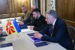 Скопје, 14 февруари 2026 (МИА) - Премиерот Христијан Мицкоски во Минхен оствари средба со претседателот на Украина, Володимир Зеленски, со кого, како што објави,  разговарале за актуелните безбедносни предизвици во Европа, за потребата од единство и солидарност, но пред сè, за праведен мир.