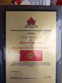 На свеченоста претседателот на „Обединети Македонци“, Ристо Дурловски, на Стерјовски му врачи признание за „заслуги за македонската кауза“. вт/дма/