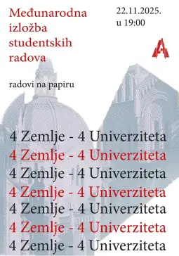 Скопје, 22 ноември 2025 (МИА) - Во Галеријата на Академијата за ликовни уметности во Сараево, вечер во 19 часот, ќе биде отворена меѓународната изложба „4 Земји 4 Универзитети“. На изложбата ќе бидат изложени осумдесетина дела на хартија (графики, цртежи, колажи и плакати), а со свои дела учествуваат и дваестина студенти од Факултетот за ликовни уметности (ФЛУ) при УКИМ во Скопје.