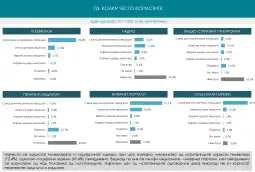 Според истражувањето, граѓаните најчесто користат телевизија и социјални мрежи, при што значајно мнозинство од испитаниците секојдневно користат телевизија (72,4 %), односно социјални мрежи (69,4 %). Веднаш по нив се онлајн-медиумите - интернет-портали, кои секојдневно се користени од над половина од испитаниците. Повеќето од испитаниците одговориле дека никогаш не ги користат печатените медиуми и радиото.