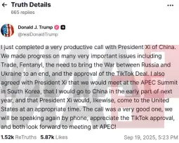 Трамп претходно изјави дека е постигнат договор меѓу САД и Кина за продолжување на работењето на ТикТок во САД и дека за тоа денеска ќе разговара со Си.
