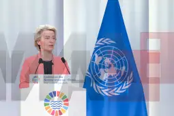 Брисел, 9 јуни 2025 (МИА) - Океанот инспирираше сликари како Матис, Шагал и многу други, но сите знаеме дека тој е многу повеќе од само инспирација - тој е живот, тој не храни, не разладува и не поврзува со светот, изјави денеска претседателка на Европската комисија, Урсула фон дер Лајен во воведното обраќање на првиот пленарен состанок на Конференцијата на ОН за океаните, што се одржува во францускиот град во Ница.