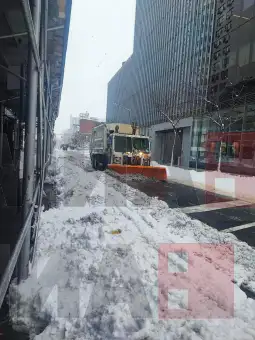 - По страшната снежна бура која помина низ Њујорк, Менхетен е речиси целосно исчистен, иако граѓани се сликаа како газат во снег кој достига до нивната половина.