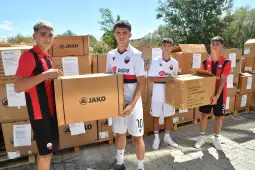 - Фудбалската федерација на Македонија (ФФМ) денес реализира рекордна донација на спортска опрема за екипите од младинските категории. Вкупно 42 екипи кои настапуваат во Супер младинската лига, Втората и Третата младинска лига добија по 44 комплети опрема (тренерки, маици и шорцеви за тренинг, ранци), како и по 30 фудбалски топки.