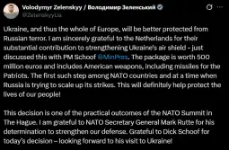 Украинскиот претседател Володимир Зеленски, кој разговараше со Шуф по телефон вчера, рече дека е „искрено благодарен на Холандија за нивниот значителен придонес во зајакнувањето на воздушниот штит на Украина.“