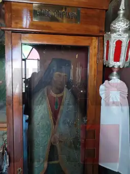 „Во еден мал кивот со мошти на светата великомаченичка Екатерина имаме една икона насликана со светиот ерарх Спиридон Тримитунтски претставен исто така како што стои во неговиот кивот во неговиот храм на островот Крф. За иконата е карактеристично што буквално е затворена во кивот, сличен на оној во кој што стојат и неговите свети мошти и таа икона го отсликува него како личност. Значи, точно како што е во кивотот, само разликата е што овде имаме икона, а таму го имаме неговото целосно нетрулежно тело“, вели отец Илче.