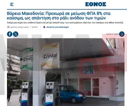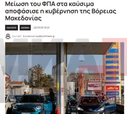 "Qeveria e Maqedonisë së Veriut njoftoi uljen e TVSH-së për karburantet, në përpjekje për të kufizuar rritjen e çmimeve të shkaktuar nga lufta në Lindjen e Mesme. Vendimi parashikon pothuajse përgjysmimin e tatimit, me qëllim mbajtjen e çmimeve në pikat e karburantit", shkruan botimi onlajn i gazetës "Ta Nea".